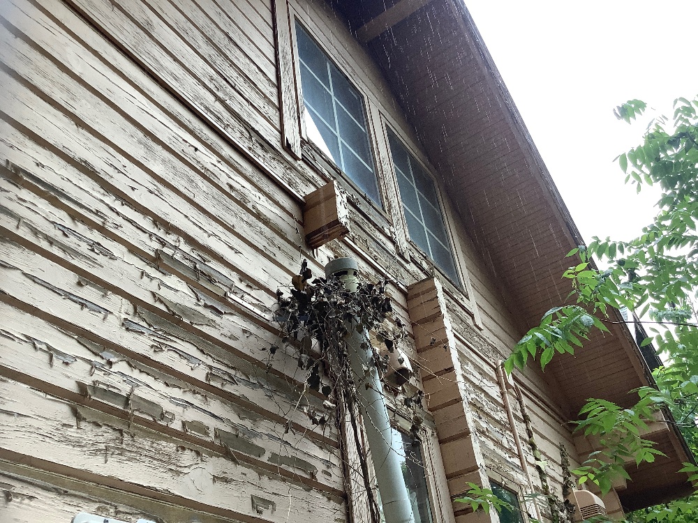 もう一つはよく痛んでいる場合はやはり旧塗膜ステインの全面除去が必要になります、やはりログハウスの塗装経験が有る職人さん完備の塗装店が良いでしょう。